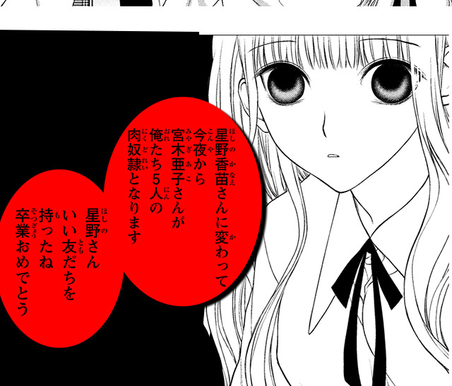 最初はよくある残酷なエロ漫画かなと思ったんですが、読んでみると犯してる側の男の子たちの複雑な気持ちとかも丁寧に描かれていて、犯している側にもいろいろあるんだなと、変に納得させられました(笑)